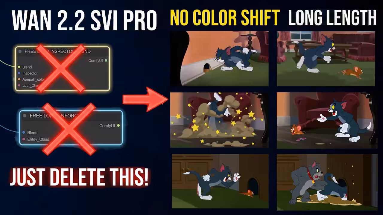 I want to give you a very important tip that most of the community misses. When you open an older SVI Pro workflow you might see a node called Free Long Inspector Blend. I know many people in the community use this because they think it helps keep things consistent for long videos but it actually causes a big problem. This node restricts the natural motion of the character and makes the entire video look stiff or static. It basically fights against the smooth motion of the Wan model. I also tested the Free Long Enforcer node and I found that it just kills the movement and adds no value. I get a much cleaner and smoother result without them so I recommend you delete these nodes immediately.